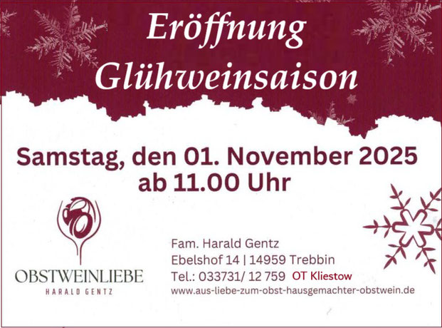 Am Samstag, den 01.11.2025 laden wir ein zum Hoffest. Wir begrüßen Sie ab um 11.00 Uhr bei uns in Trebbin, OT Kliestow, Ebelshof 14 und freuen uns bereits jetzt auf viele Besucher.